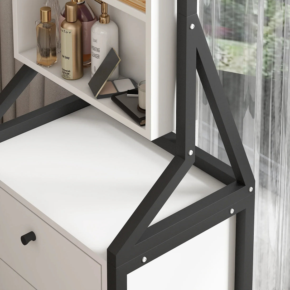 هذا هو 3 في 1 الطابق الدائمة مرآة مجلس الوزراء التي لا تحمل فقط مرآة خلع الملابس و360 درجة رف التخزين الدورية، ولكن يسمح أيضا للتخزين. مظهر رائع، قوي ودائم.التدوير مرآة التخزين مجلس الوزراء هو إضافة تنوعا وأنيقة إلى أي غرفة نوم أو منطقة خلع الملابس. يتميز تصميمه الفريد بقاعدة مربعة ذات مستويين مع أدراج بيضاء ومرآة دوارة مستطيلة مع حجرات تخزين. المرآة يمكن تعديلها تصل إلى 360 درجة للراحة والمرونة،إعدادات أنسنة لاستخدام أكثر ملاءمة.
