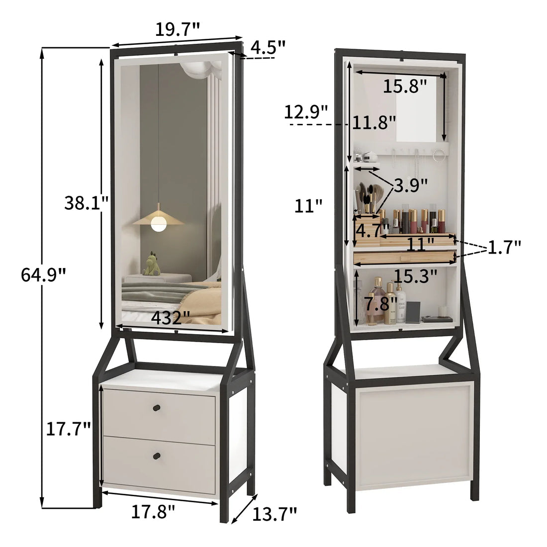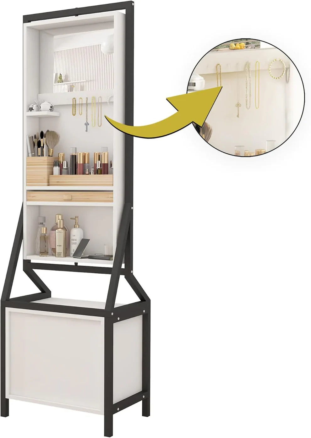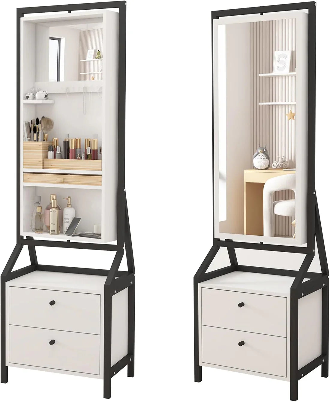 مظهر رائع وقوي ومتين. خزانة تخزين مع المرآة الدوارة هي إضافة متعددة الاستخدامات وأنيقة لأي غرفة نوم أو منطقة خلع الملابس