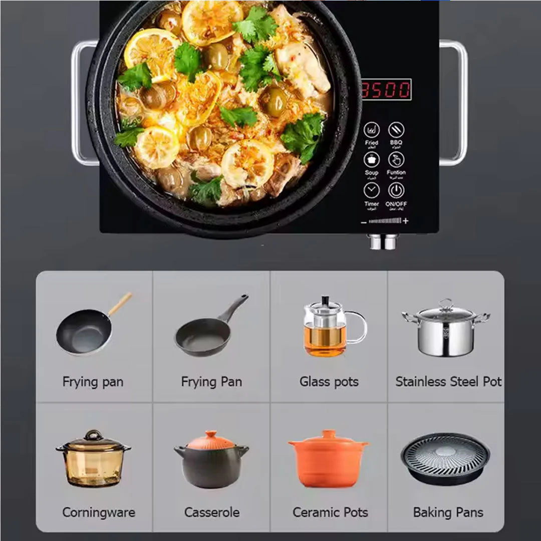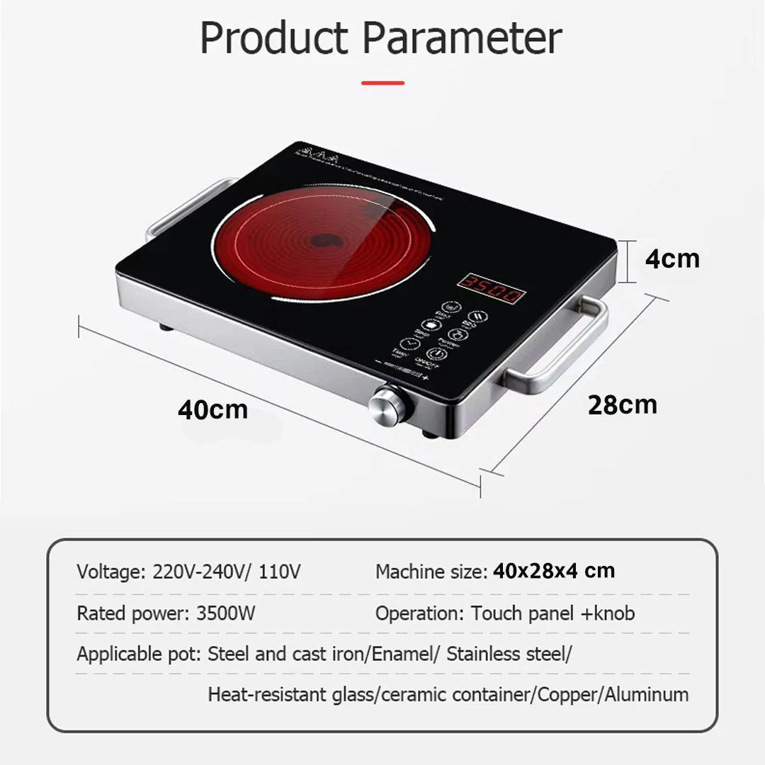 طباخ كهربائي محمول بقوة 3500 وات عالي الطاقة مصنوع من الفولاذ المقاوم للصدأ ومضاد للماء ولا يحتوي على إشعاعات بالأشعة تحت الحمراء للاستخدام المنزلي والفندقي