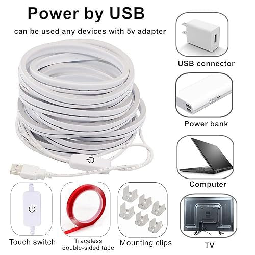 - 【USB Powered 】Designed with a 5V USB plug, enables you to conveniently directly charge via power bank, computer, cell phone charger, TV, etc. (Notes: Not included USB charger)