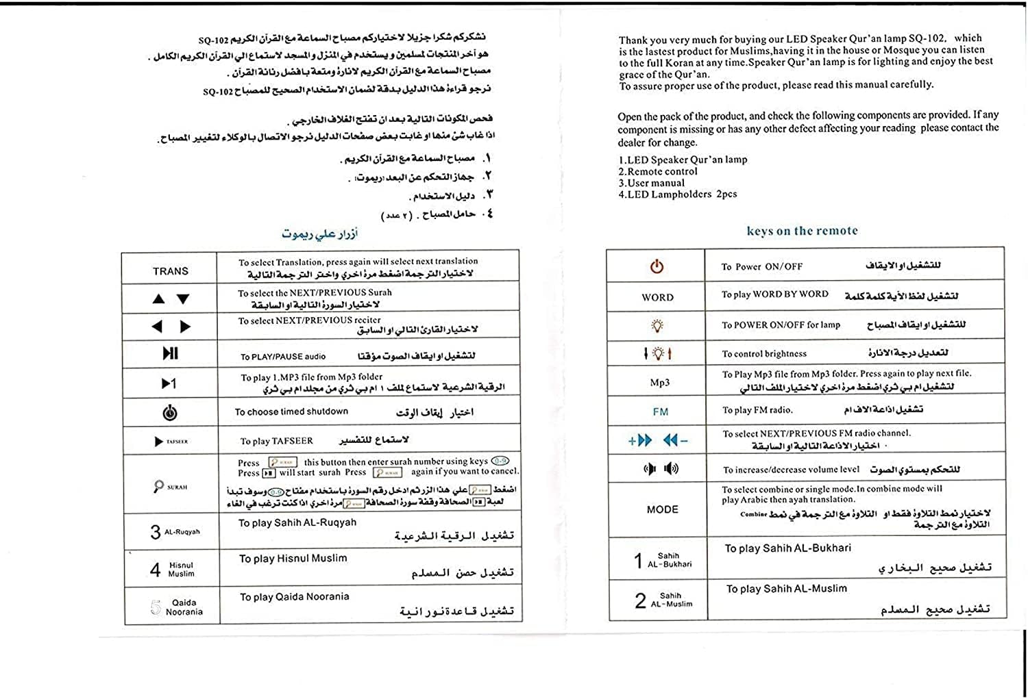 SQ-102 PLUS LED Quran Speaker Bluetooth With Lamp, Islamic Holy Quran mp3 Radio Koran for Muslin SQ-102 PLUS