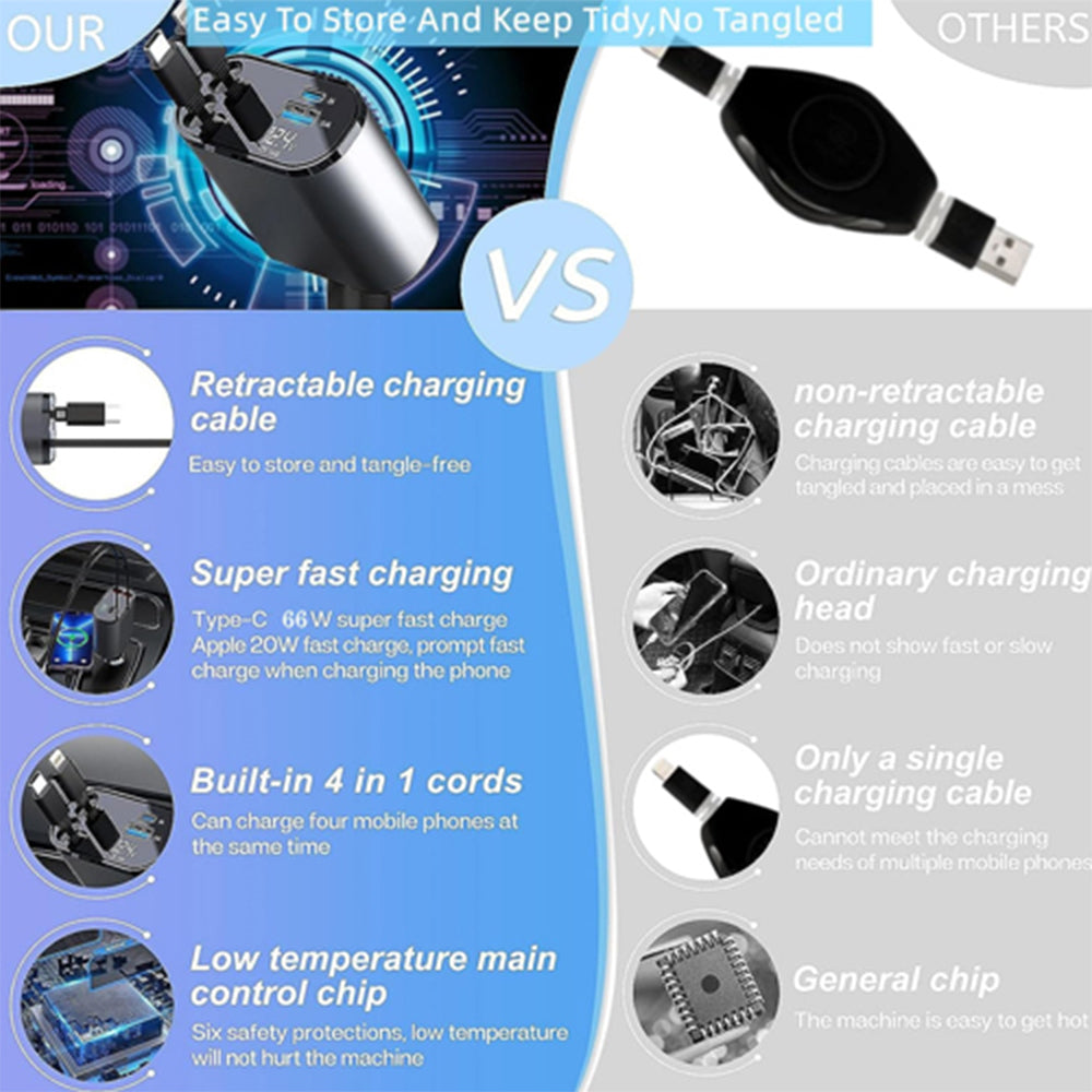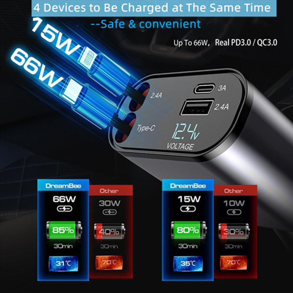 شاحن سيارة قابل للسحب، 120 واط، 4 في 1 فائق السرعة